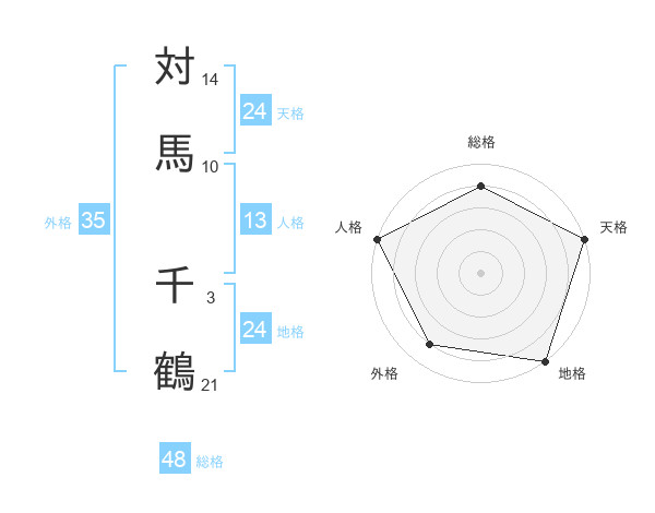 対馬 千鶴さんを姓名の画数から五運を鑑定