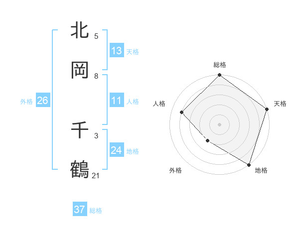北岡 千鶴さんを姓名の画数から五運を鑑定