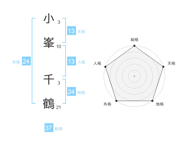 小峯 千鶴さんを姓名の画数から五運を鑑定
