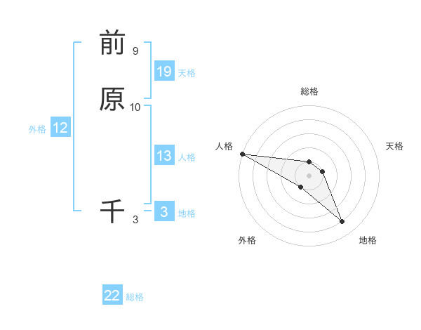 前原 千さんの総格は22画の1点!
