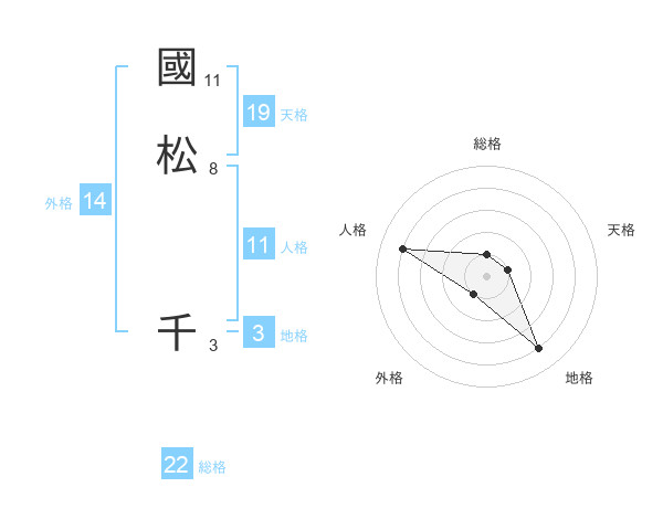 國松 千さんの総格は22画の1点!