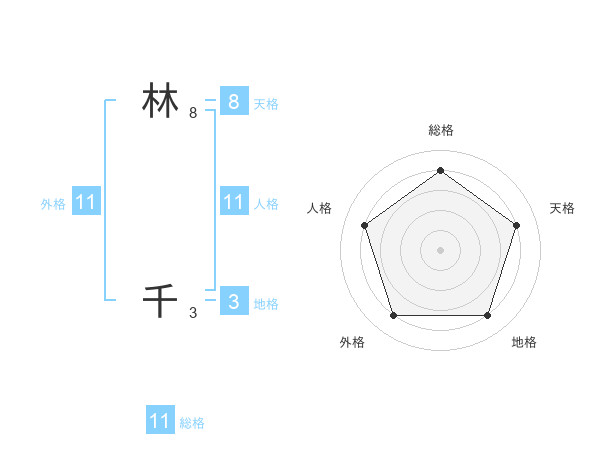 林 千さんの外格は11画の4点!