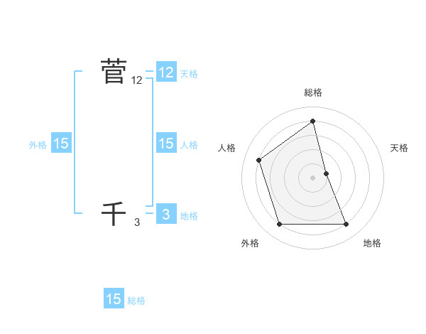 菅 千さんの総格は15画の4点!