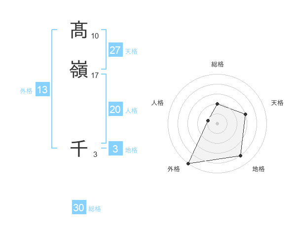 髙嶺 千さんの総格は30画の2点!