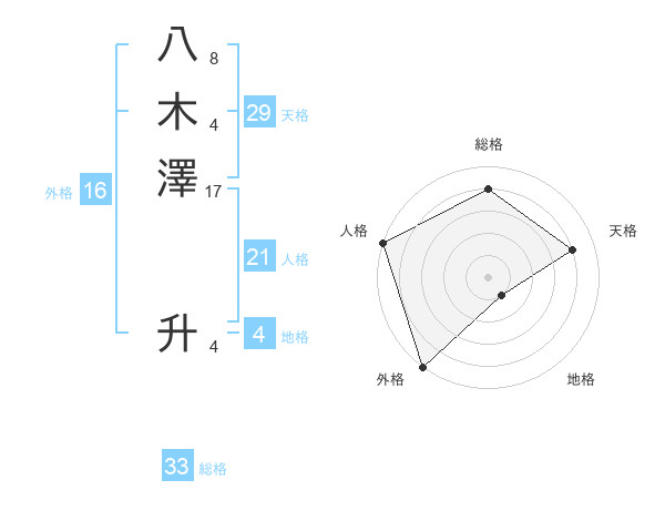 八木澤 升さんの総格は33画の4点!