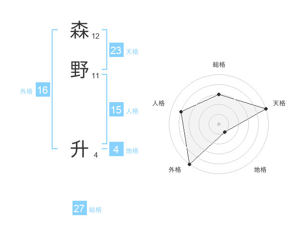 森野 升さんの総格は27画の3点!