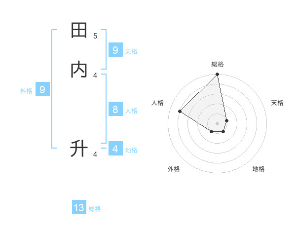 田内 升さんの総格は13画の5点!