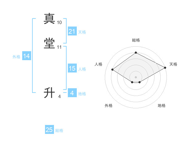 真堂 升さんの天格は21画の5点!