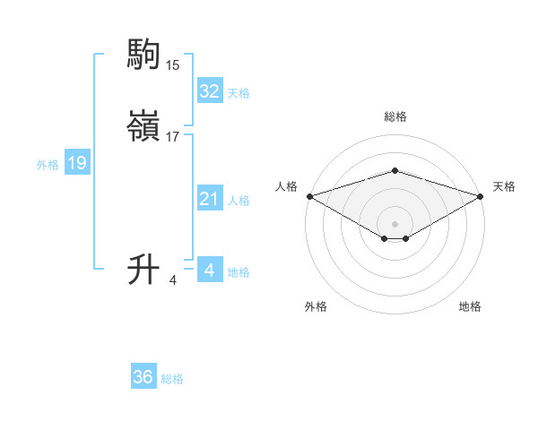 駒嶺 升さんの総格は36画の3点!