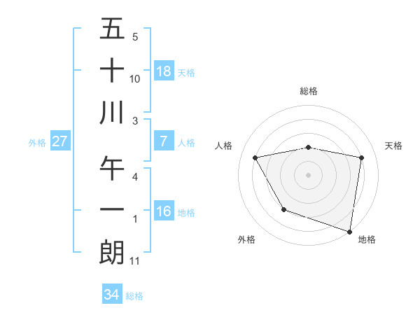 五十川 午一朗さんを姓名の画数から五運を鑑定