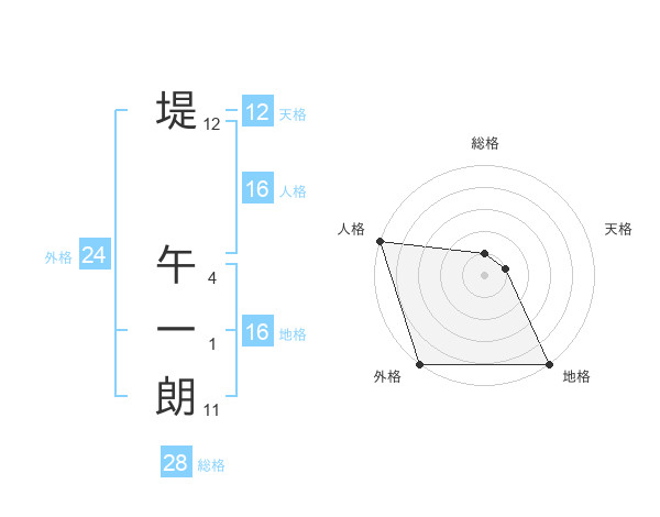 堤 午一朗さんを姓名の画数から五運を鑑定