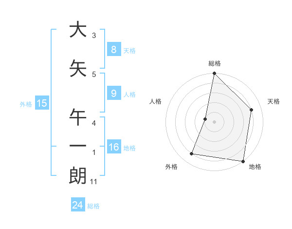 大矢 午一朗さんの総格は24画の5点