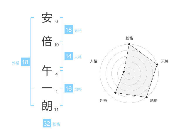 安倍 午一朗さんの天格は16画の5点!