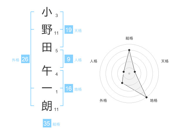 小野田 午一朗さんを姓名の画数から五運を鑑定