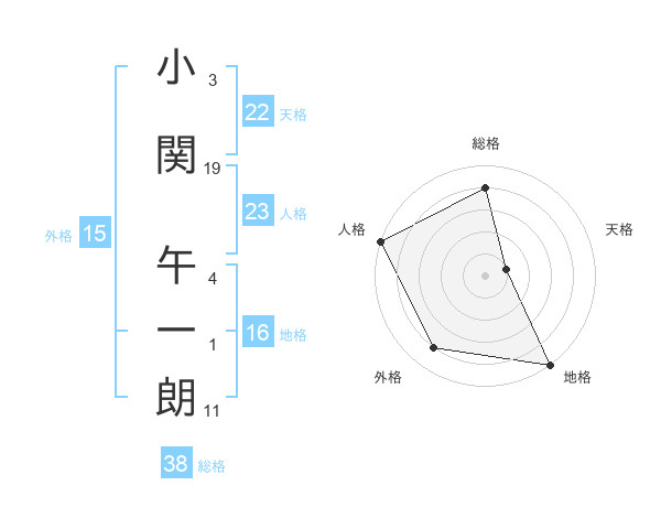 小関 午一朗さんを姓名の画数から五運を鑑定