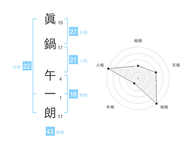 眞鍋 午一朗さんを姓名の画数から五運を鑑定