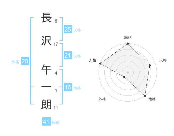長沢 午一朗さんを姓名の画数から五運を鑑定