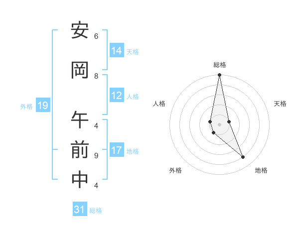 安岡 午前中さんを姓名の画数から五運を鑑定
