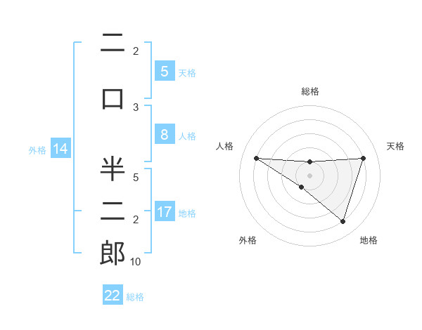 二口 半二郎さんの総格は22画の1点!