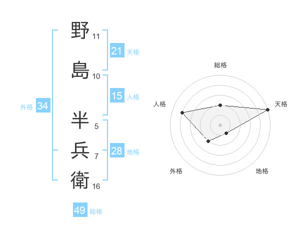野島 半兵衛さんを姓名の画数から五運を鑑定