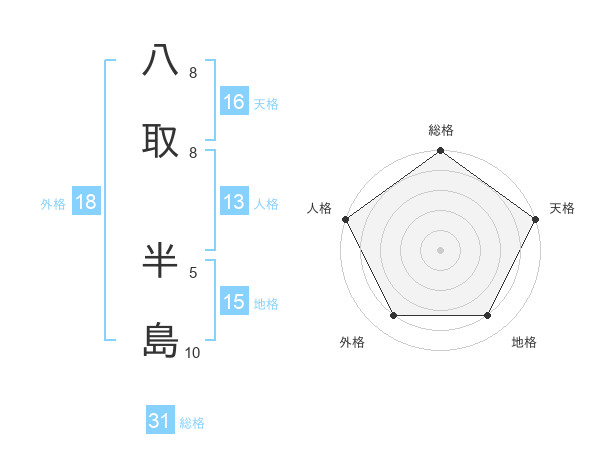八取 半島さんの総格は31画の5点!
