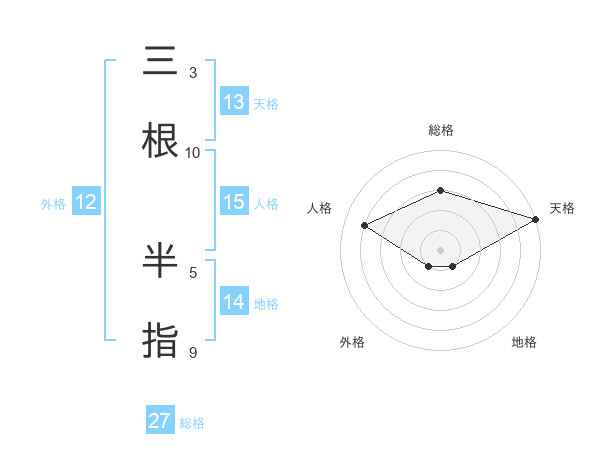 三根 半指さんの天格は13画の5点!