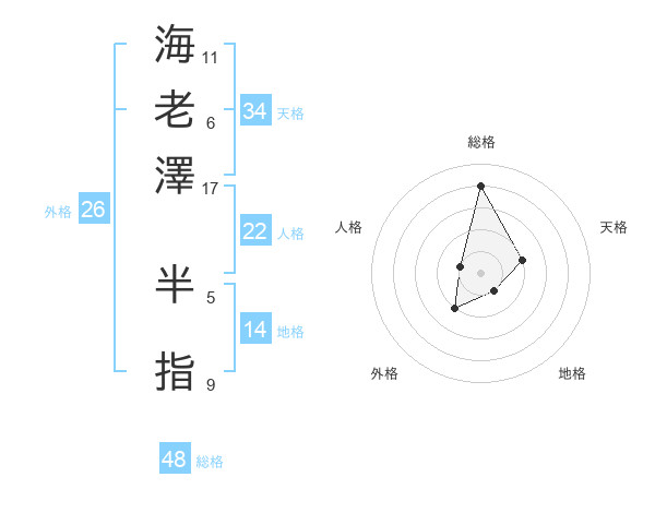 海老澤 半指さんを姓名の画数から五運を鑑定