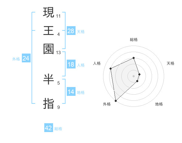 現王園 半指さんの総格は42画の3点!