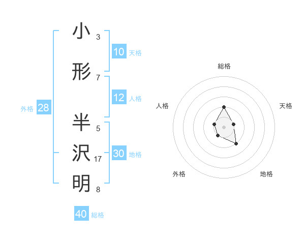 小形 半沢明さんを姓名の画数から五運を鑑定