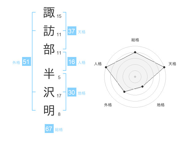 諏訪部 半沢明さんを姓名の画数から五運を鑑定