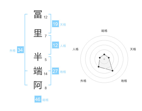 冨里 半端阿さんを姓名の画数から五運を鑑定