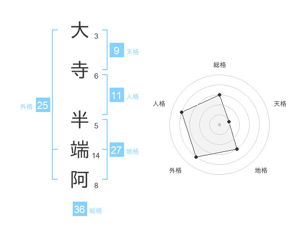 大寺 半端阿さんを姓名の画数から五運を鑑定