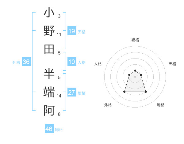 小野田 半端阿さんを姓名の画数から五運を鑑定