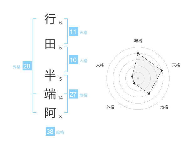 行田 半端阿さんの総格は38画の4点!
