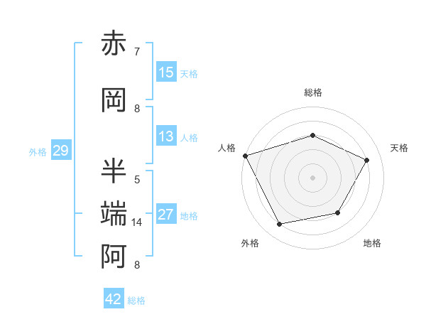 赤岡 半端阿さんを姓名の画数から五運を鑑定