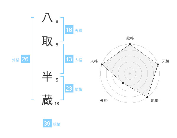 八取 半蔵さんを姓名の画数から五運を鑑定
