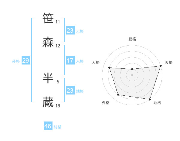 笹森 半蔵さんを姓名の画数から五運を鑑定