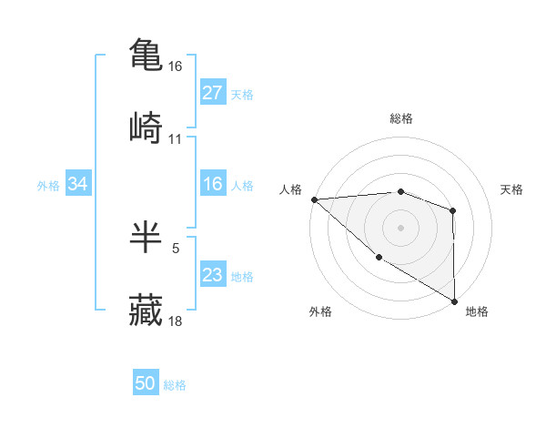 亀崎 半藏さんを姓名の画数から五運を鑑定