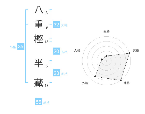 八重樫 半藏さんを姓名の画数から五運を鑑定