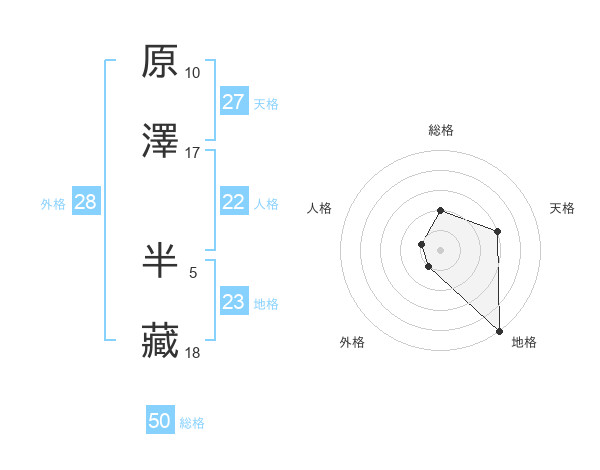 原澤 半藏さんの総格は50画の2点!