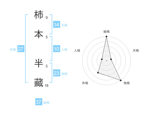 柿本 半藏さんの総格は37画の5点!