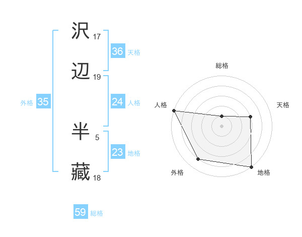 沢辺 半藏さんの総格は59画の1点!