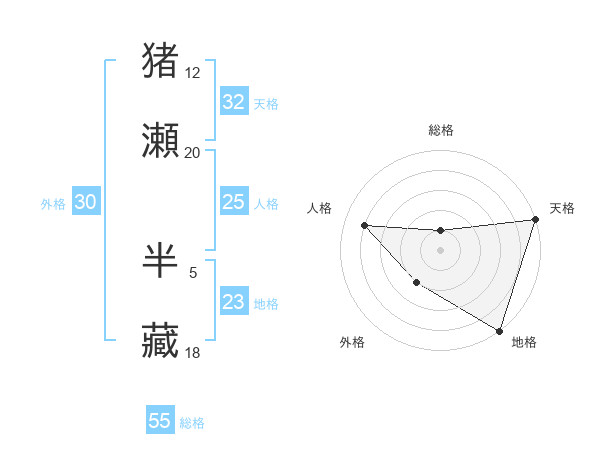 猪瀬 半藏さんを姓名の画数から五運を鑑定
