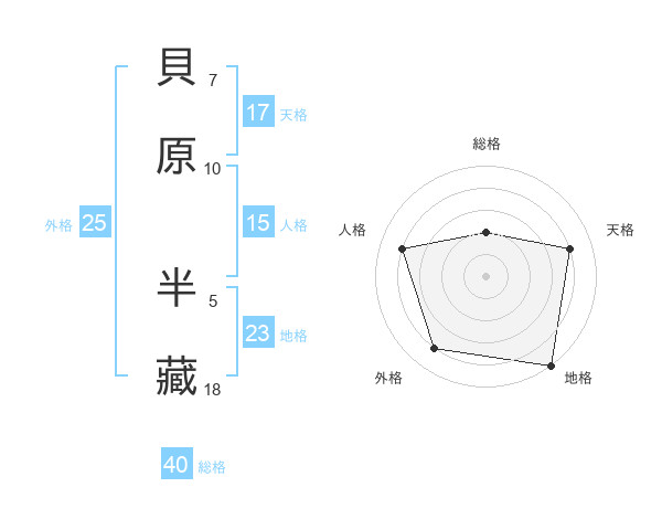 貝原 半藏さんを姓名の画数から五運を鑑定