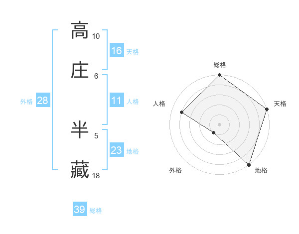 高庄 半藏さんを姓名の画数から五運を鑑定