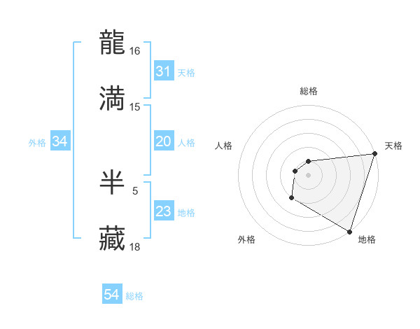 龍満 半藏さんを姓名の画数から五運を鑑定