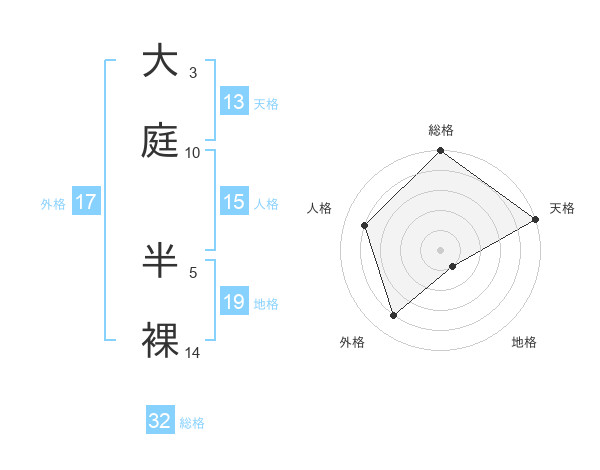 大庭 半裸さんを姓名の画数から五運を鑑定