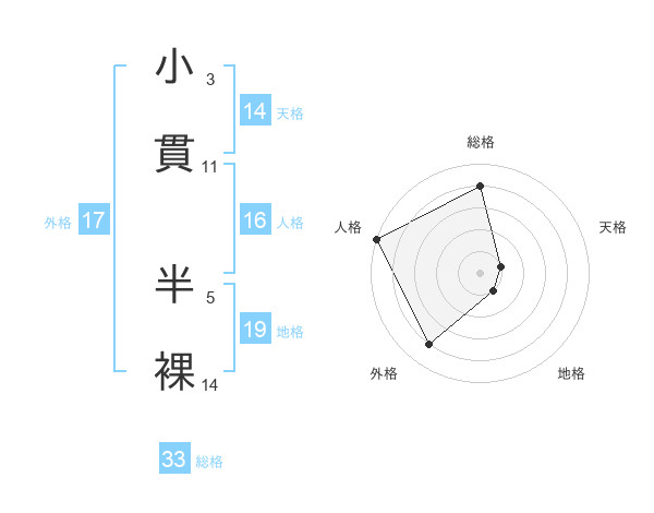 小貫 半裸さんの総格は33画の4点!