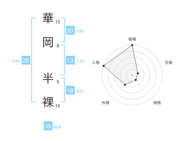 華岡 半裸さんの総格は39画の5点!