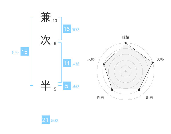 兼次 半さんの総格は21画の5点!